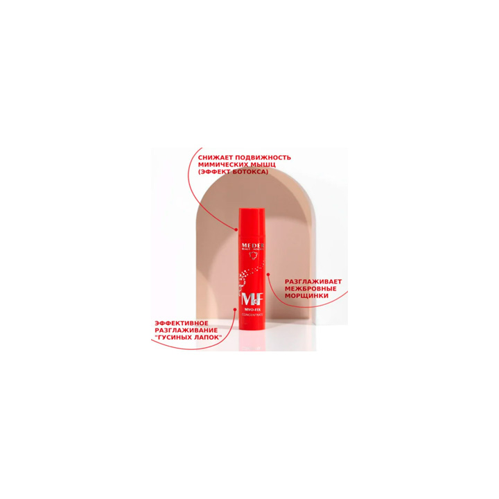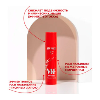 Myo-Fix (Mf4) – концентрат против мимических и статических морщин на лбу, переносице, вокруг рта и вокруг глаз. Mf4 блокирует мимическую активность и расслабляет напряженные мыщцы лица, позволяя при этом контролировать мимику. При желании вы сможете сморщить лоб, но действие препарата таково, что делать это вам станет сложнее – из-за расслабленности мышц. В составе Mf4 есть три мощных пептида, включая миорелаксанты, отвечающие за эффект “обездвиживания”. Ацетил-гексапептид-8 блокирует мимическую активность лба и вокруг глаз. Пептид Syn-Ake блокирует передачу нервного импульса в мышцу и она расслабляется. Пальмитоил пентапептид-4 стимулирует синтез коллагена. Myo-Fix нужно использовать по схеме: первые 5 недель 2 раза в день, затем 5 недель 1 раз в день, утром или вечером, на выбор. Mf4 нельзя сочетать с кислотами!