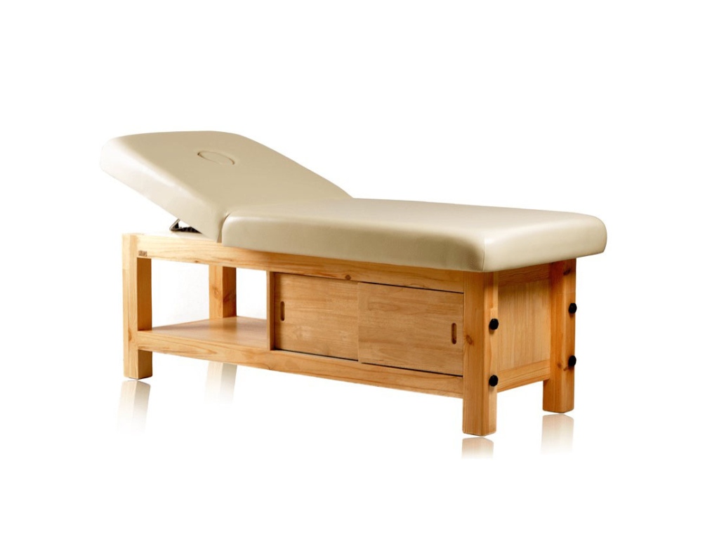 Этот массажный стол имеет раздвижные жалюзи под ним, предоставляя удобное место для хранения необходимых материалов и принадлежностей. Доступ к хранилищу можно получить с любой стороны массажного стола во время процедуры.