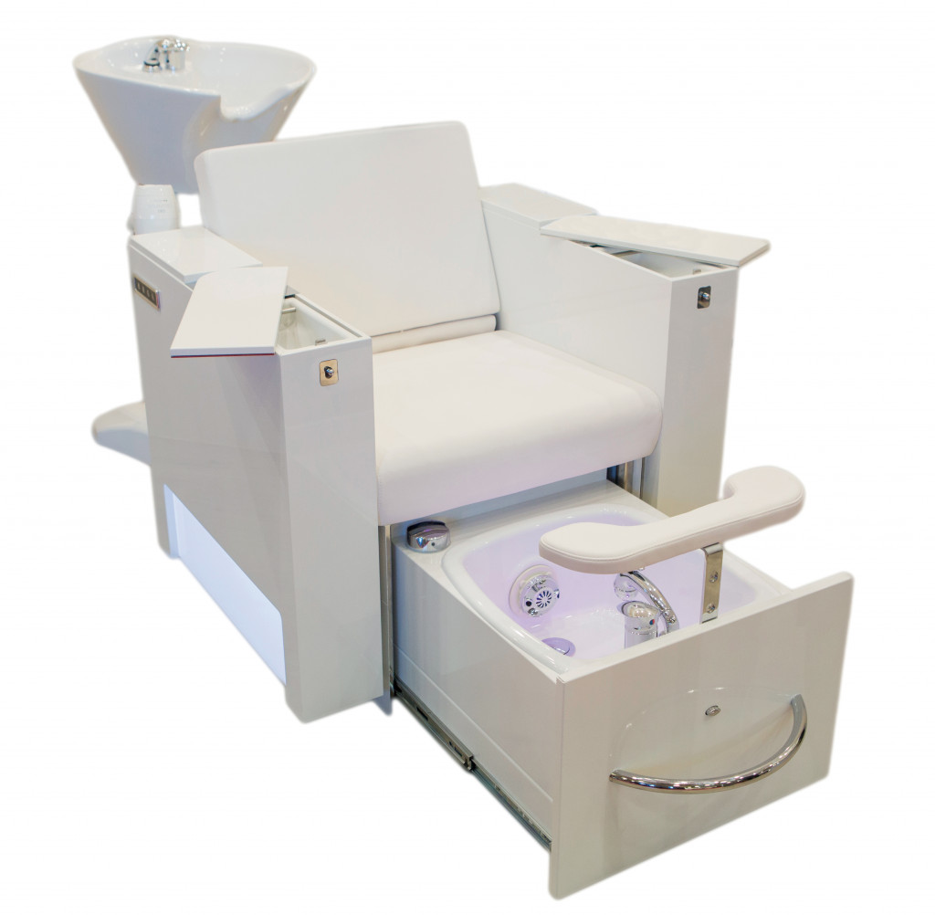 Электрически регулируемые по высоте сиденье и спинка. Поворотная система. Многофункциональное кресло для педикюра, маникюра, мытья, ухода за волосами, лицом и телом.