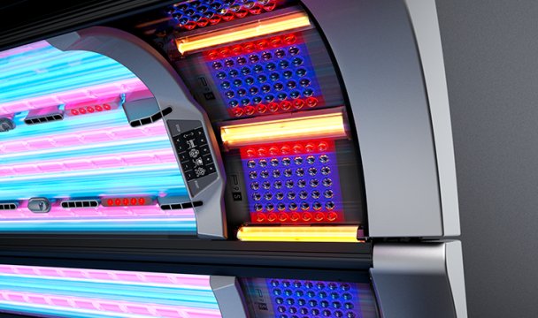 Инновационная светодиодная система SunSphere в P9S предотвращает нежелательное инфракрасное излучение и использует только те длины волн, которые необходимы для загара. Равномерное распределение излучения обеспечивается асферическими стеклянными линзами. Синие UVA-светодиоды гарантируют превосходную прямую пигментацию для мгновенно видимого загара. Красные косметические светодиоды обеспечивают уход за кожей во время загара. А специальные желтые UVB-лампы способствуют накоплению пигментов и витамина D.