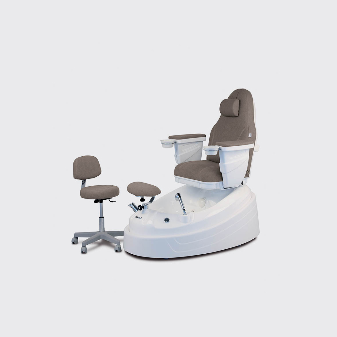 Для обеспечения комфорта клиентов, PEDI SPA ECO оснащен вращающимся креслом, изготовленным из высококачественных материалов. Кресло обладает функцией горизонтального перемещения, регулируемой спинкой и широкими подлокотниками, что гарантирует абсолютное удобство во время процедур. Кроме того, кресло оснащено мягкой и удобной опорой для стоп, регулируемой по высоте и длине, что позволяет адаптировать его к индивидуальным особенностям каждого клиента.