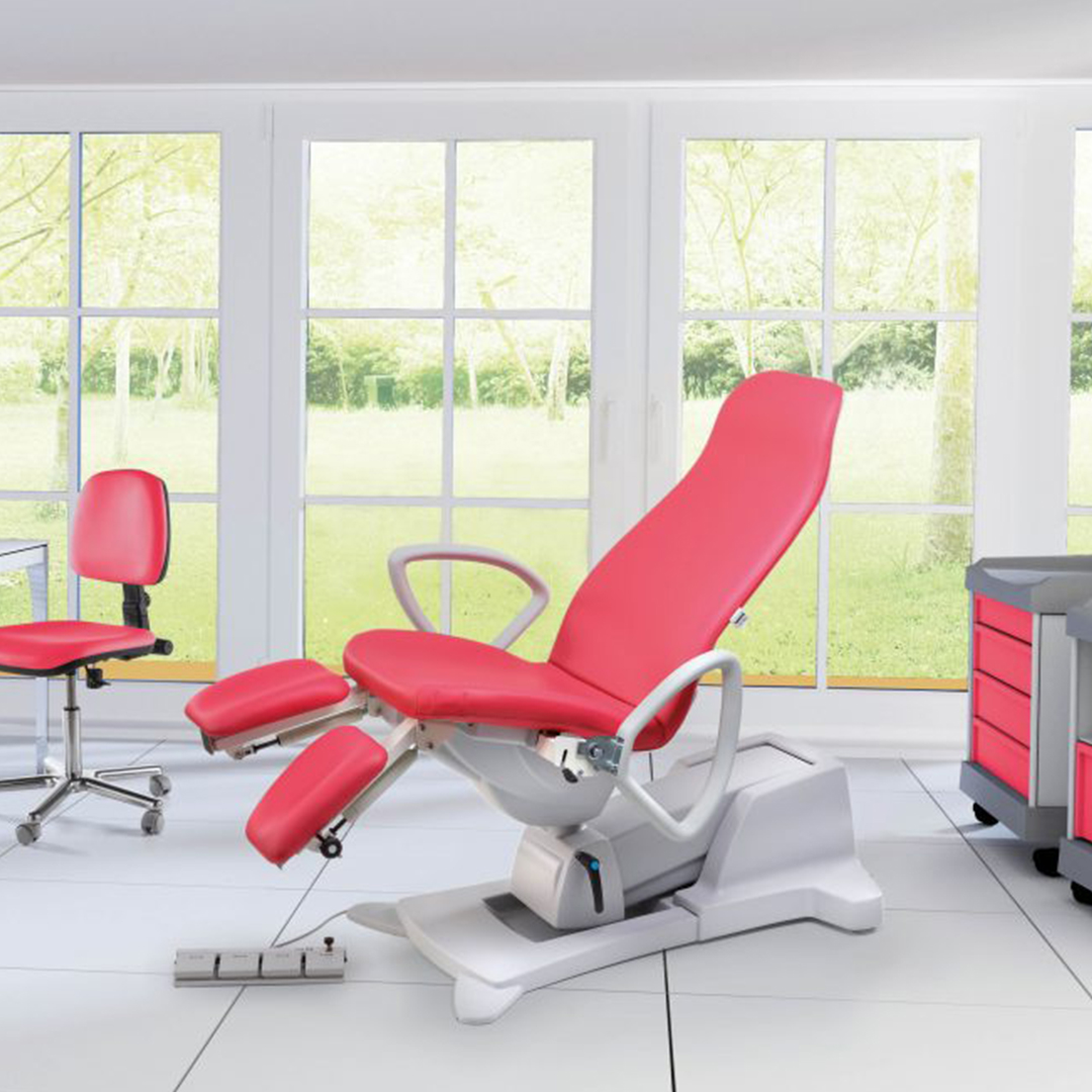 Педикюрное кресло на электроприводе с ножным пультом управления, имеет два мотора для регулировки высоты и угла наклона кресла. Наклон спинки и ножной части регулируются при помощи пневматики, опоры для ног раздвижные. Матрас анатомический, изогнутые подлокотники легко откидываются назад, основа из пластика серого цвета.